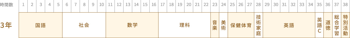 | 3 | 体育 | 技術家庭 | 数学 | 国語 | 体育 | 特別活動 |